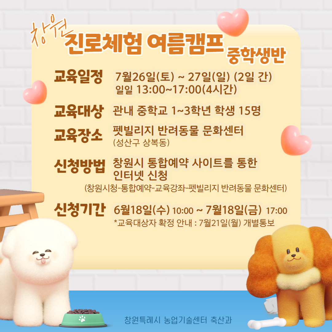 펫빌리지 '창원 반려동물 진로체험 여름캠프' 홍보
