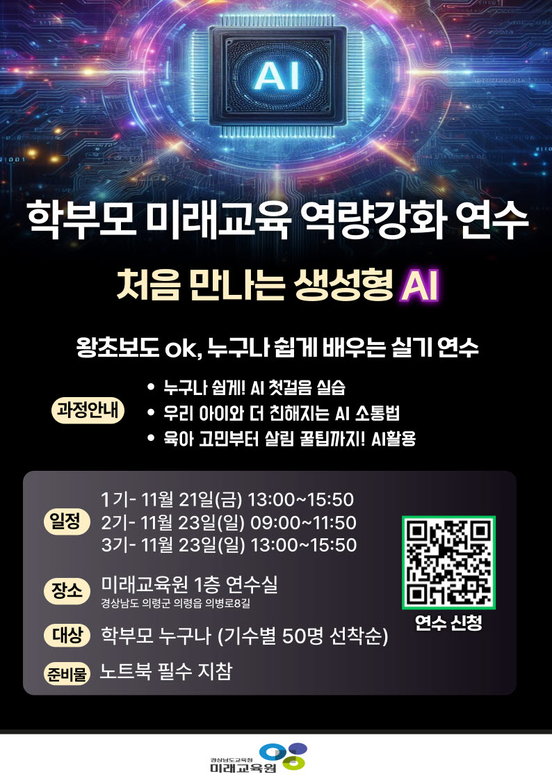 처음 만나는 생성형 AI, 학부모를 위한 AI실기 연수 신청 안내